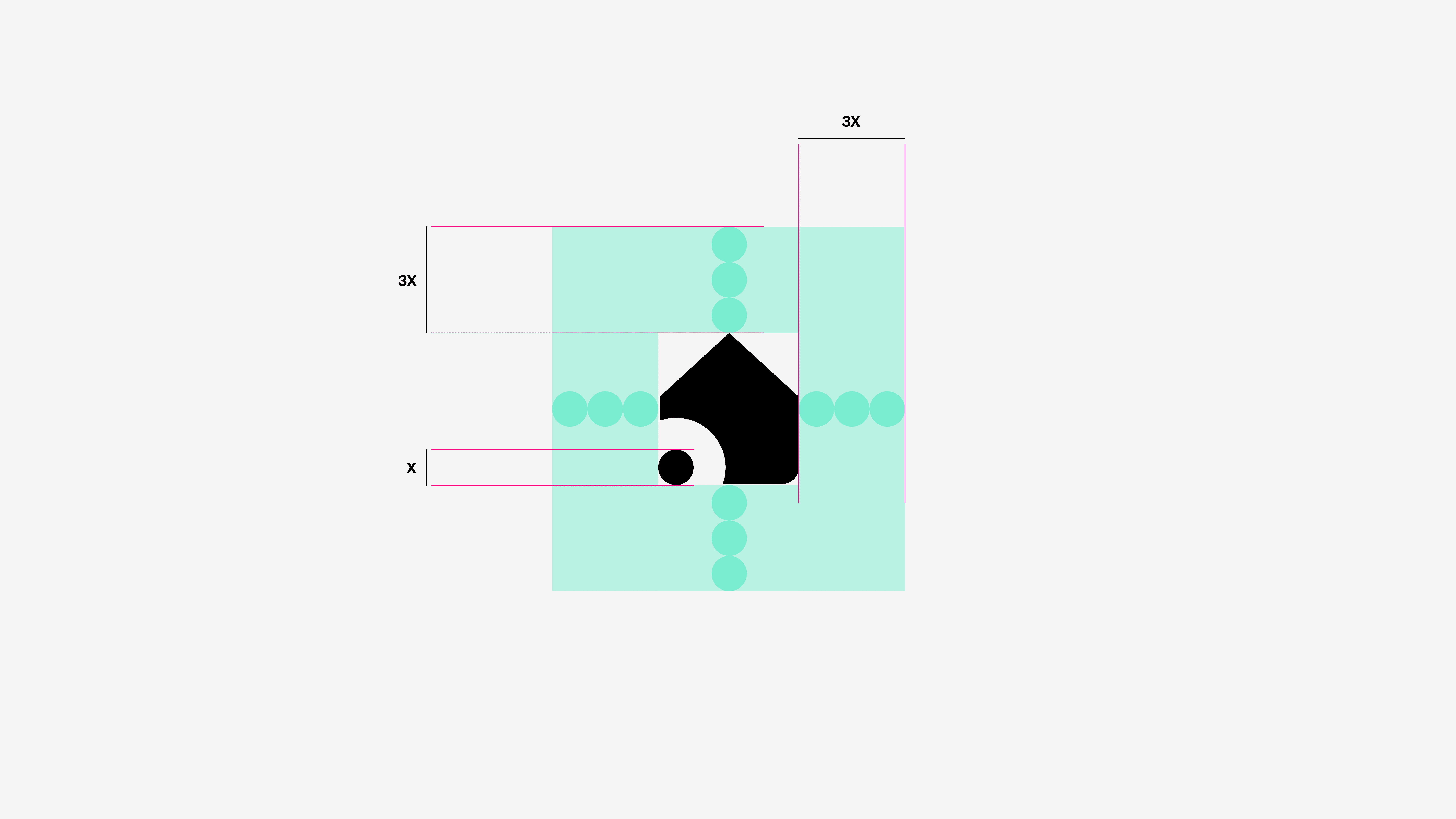 The same goes for the Signal House mark—keep clear space three times the height and width of the Signal House dot, with no text or graphics.
